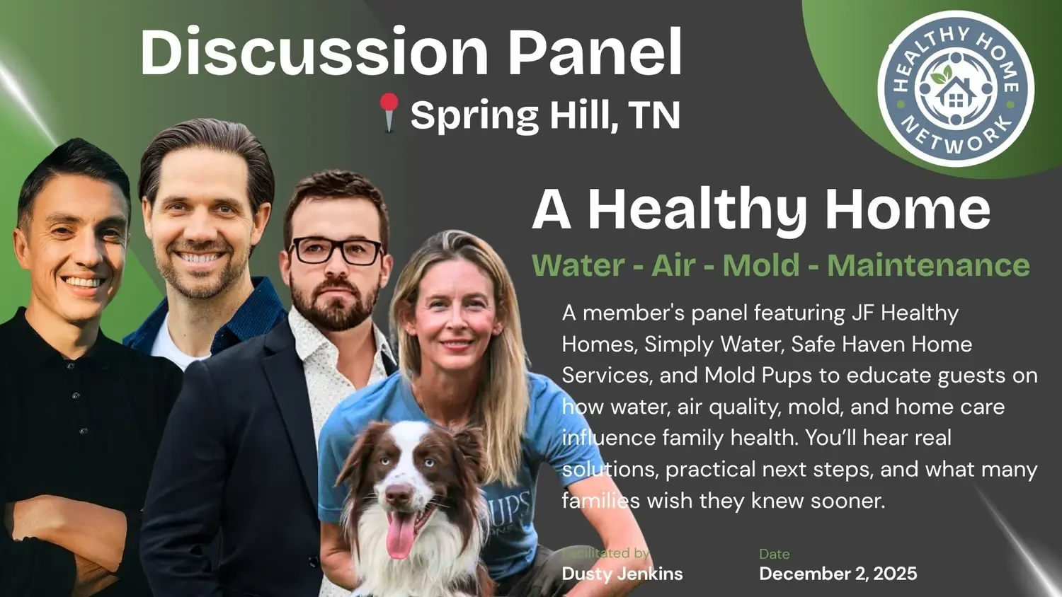 Business Members of the Healthy Home Network receive exclusive invitations to speak on monthly live panel discussions. These events are filmed, photographed, and shared to help educate our community on how to remove toxins from everyday life.